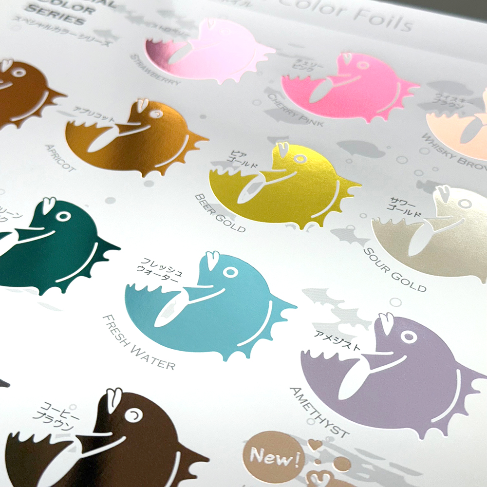 印刷だけでは表現できない立体感やメタリックな輝きが生まれ、箔の存在感とインパクトが本のプレミアム感を演出します。箔には金や銀だけでなく、多彩なメタリックカラーがあり、キラキラと偏光するホログラム箔も選べます。