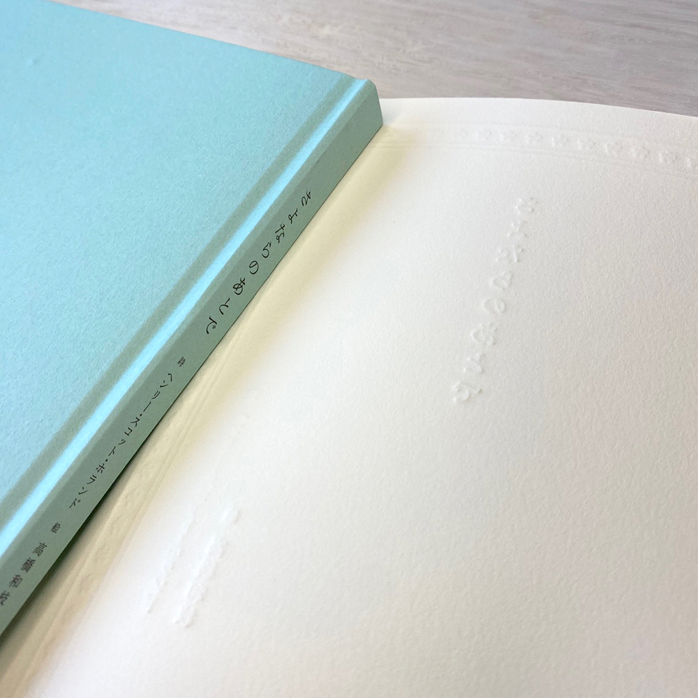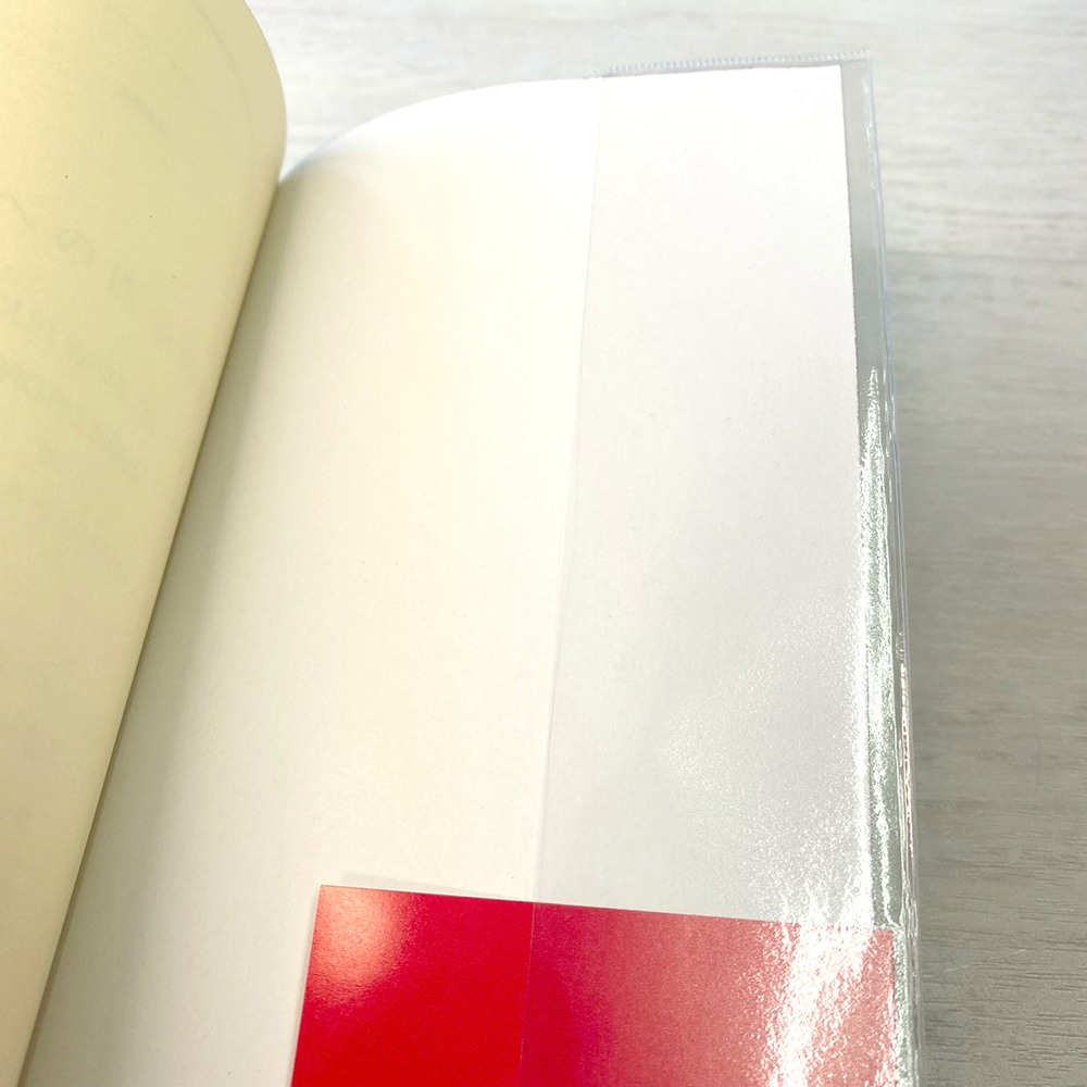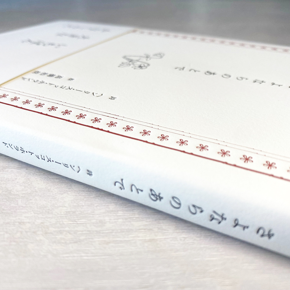 普段あまり目にすることのない、たいへんいへん珍しい仕様です。デザイン性の高さはもちろん、カバーとの一体感が生まれることで、本としての完成度に思わず目を奪われます。とてもおしゃれで印象的な仕上がりになりますが、コストがかかるため、販売部数が見込める書籍や愛蔵版、コレクターズブックなどの特別な本に採用されることが多いです。